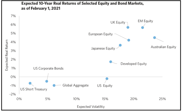 “U.K. equities stand out as offering one of the most attractive risk-return trade-offs, priced to return a notch higher than EM equities with significantly lower volatility,” Arnott said. “Both U.K. and EM value stocks may prove to be the trades of the decade,” he added.